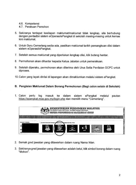 • Bebas daripada hutang Lebihan Bayaran Gaji dan Elaun (LBGE); dan Diperaku oleh Ketua Jabatan (Pengarah Institusi/ Pengetua/ Guru Besar).